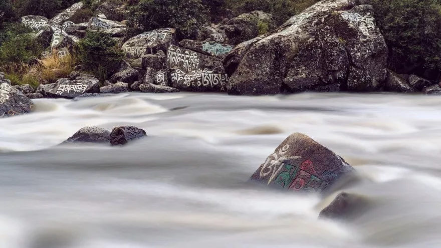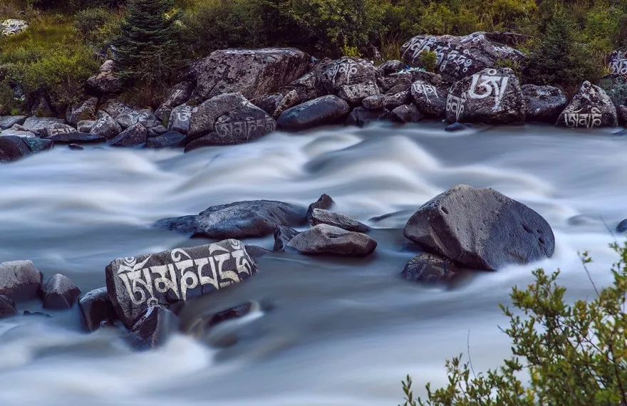 緩緩駛出馬爾康后,厚重的云層終于透出一縷陽光,似乎在為我們指引色達的方向。一路上,佛教元素愈來愈多,經(jīng)幡、嗎尼石、還有一路徒步朝圣的當?shù)厝恕?/p>