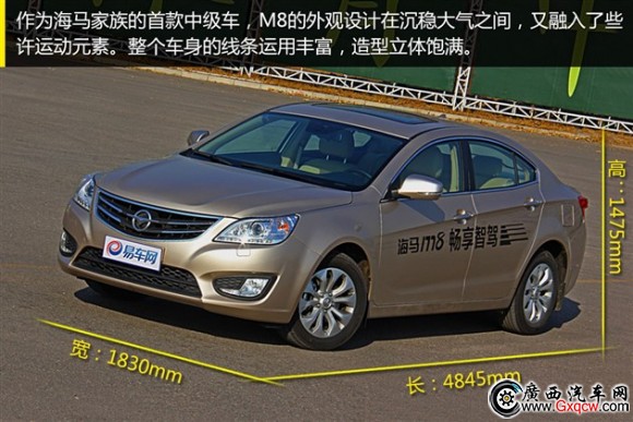 海馬M8的外觀設(shè)計(jì)是屬于整體成熟大氣,其中又稍帶有運(yùn)動(dòng)風(fēng)格的類型。車身線條運(yùn)用的很豐富,很有層次感。扁平的車頭造型加上短小精悍的尾部,再由側(cè)面兩條凸出的腰線相連接,使整個(gè)車身富有層次感和立體感。