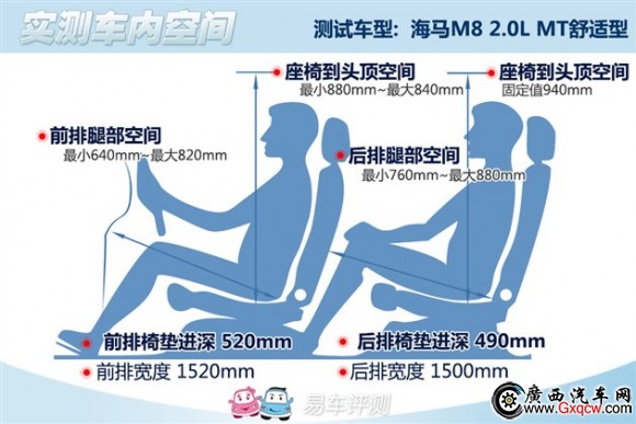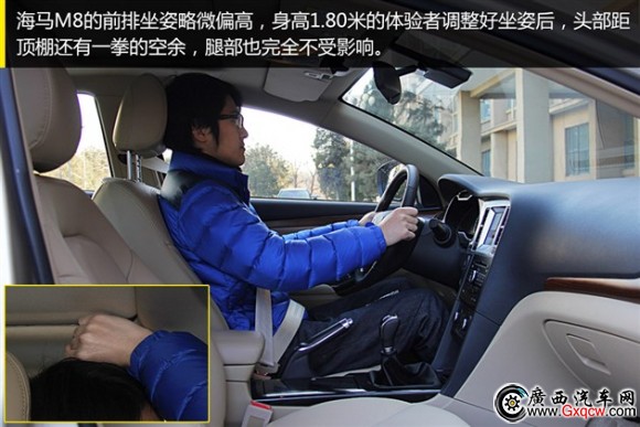 駕乘空間和空間整體實(shí)用性是考驗(yàn)一輛中級(jí)車的重要標(biāo)準(zhǔn)。海馬M8擁有2800mm的軸距,尺寸本身在同級(jí)車中具有一定的優(yōu)勢。實(shí)際表現(xiàn)也很不錯(cuò),尤其是后排的腿部空間,身高1.82米的體驗(yàn)者坐在后排,腿部距前座椅靠背尚有將近三拳的距離。**不足是后排頭部空間,由于車尾部造型的關(guān)系,留給頭頂?shù)木嚯x大約只有兩指。可以說是為流線的車身外觀做出了犧牲。