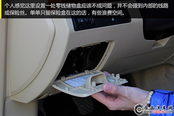 儲(chǔ)物方面,車內(nèi)設(shè)置的儲(chǔ)物格十分豐富,像前排扶手箱和后排扶手都加入了分層結(jié)構(gòu),上面的方格內(nèi)可以存放隨身的零散物品。**令人不解的是駕駛位下方,本以為會(huì)有零錢盒的位置,結(jié)果發(fā)現(xiàn)卻是保險(xiǎn)盒。觀察了一下,發(fā)現(xiàn)內(nèi)部還是有富余空間的,完全可以在此設(shè)置一處零錢盒。