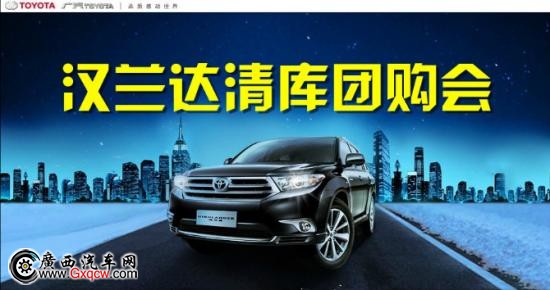 3月14-15日廣汽豐田南寧廣緣高新區(qū)店特別推出2014款漢蘭達清庫大促行動,價格一觸到底,車源限量搶購,驚喜不斷!,訂購2014款漢蘭達*高可享40000元現(xiàn)金鉅惠!僅10臺。!車源有限,售完即止。