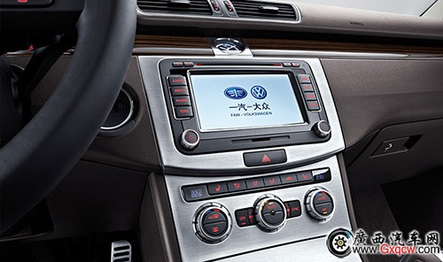 上軟下硬材質(zhì)覆蓋的儀表臺(tái)整體造型與老款CC保持一致,時(shí)鐘、大面積拉絲鋁裝飾非常能提升檔次。雙區(qū)自動(dòng)空調(diào)控制區(qū)由之前的一體式雙旋鈕變成了現(xiàn)在的分體式三旋鈕,風(fēng)量調(diào)節(jié)從按鍵控制變?yōu)樾o控制,使用起來(lái)便捷度有所提升。