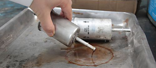 更換一個新的汽油濾清器后,在灌入汽油。通過濾清之后我們可以看到過濾后的機(jī)油顏色。