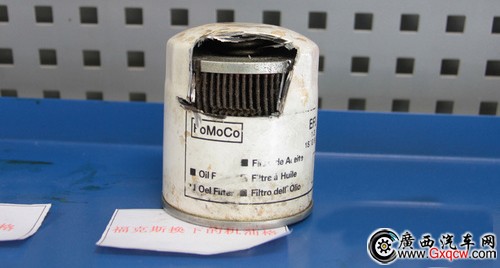 使用了7800公里后的機(jī)油濾清器。不難看出,機(jī)濾內(nèi)部紙已經(jīng)完全變黑,過濾效果已經(jīng)非常的差,需要更換。