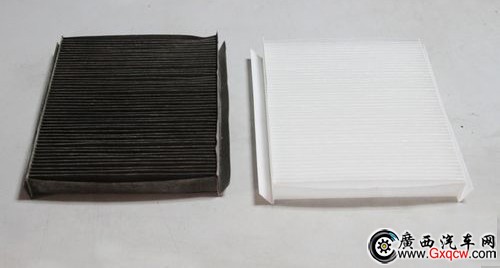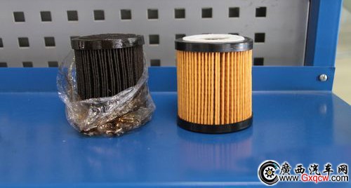 拆開外殼直接拿舊濾紙與新的機(jī)濾對比,外觀上的效果非常明顯。