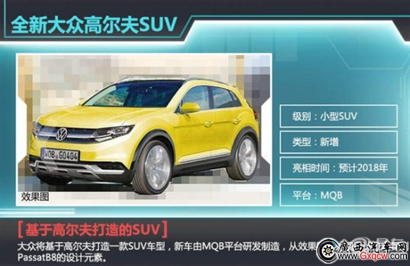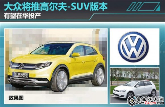 目前大眾在華的SUV產(chǎn)品有上海大眾途觀與進(jìn)口途銳,而面對(duì)仍將持續(xù)火熱的SUV市場(chǎng)一汽-大眾有意分一杯羹,由于MQB平臺(tái)的靈活性,基于現(xiàn)款車型打造SUV更為方便。近日,網(wǎng)通社從德國媒體獲得一張高爾夫SUV的假想圖。這款新車將出自MQB平臺(tái),定位介于大眾TAIGUN與TIGUAN之間,有望于2018年亮相。由于該車基于高爾夫打造,因此新車引入后有望由一汽-大眾生產(chǎn)。