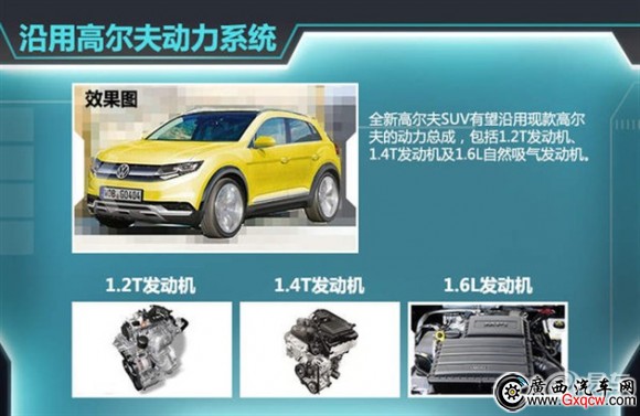 目前在售的高爾夫車型搭載EA211系列的1.2T、1.4T、1.6L發(fā)動(dòng)機(jī),而隨著排放標(biāo)準(zhǔn)的日益嚴(yán)格,1.6L自然吸氣發(fā)動(dòng)機(jī)有望被1.2T逐步替代。而這款由高爾夫衍生的SUV車型在動(dòng)力上將延續(xù)上述動(dòng)力總成,此外包括高爾夫GTE、純電動(dòng)版與高爾夫R的總成也有望悉數(shù)移植到這款SUV車型上。新車采用橫置前驅(qū)的動(dòng)力布局,而高配車型有望出現(xiàn)搭載4MOTION系統(tǒng)的四驅(qū)版本。