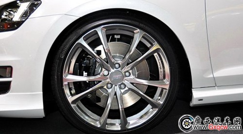 輪圈為ABT*新款ER 19寸輪圈,采用雙五福設(shè)計(jì),表面為鍍鉻噴涂。這款輪圈為鑄造工藝打造,ABT的大部分市售輪圈均為鑄造工藝。