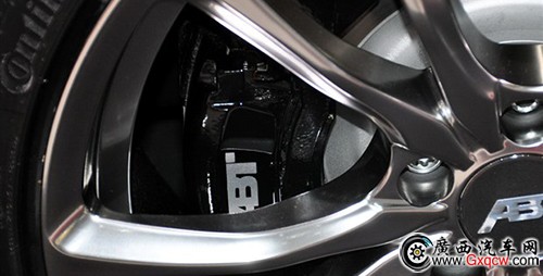 透過前輪,我們還看到了ABT的單活塞制動(dòng)套件,雖然是單活塞,其售價(jià)可比一般四活塞套件的價(jià)格。