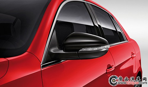 車身側(cè)面與寶來普通版車型區(qū)別不大,最為明顯的變化來自于黑色涂裝的后視鏡。