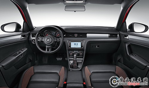 寶來Sportline的內(nèi)飾要更加年輕。中控臺(tái)以及車頂內(nèi)飾板都采用了全黑配色,方向盤、排擋桿以及座椅等位置采用紅線縫合,整體視覺效果非常運(yùn)動(dòng)。