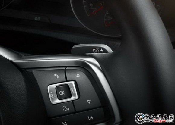 高爾夫R-Line自動擋裝備了方向盤換擋撥片,操控更便利