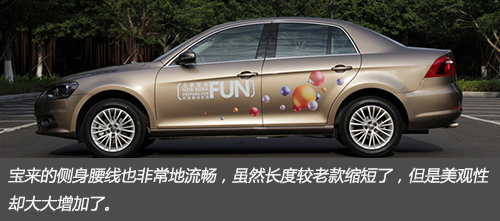 寶來的側(cè)身腰線也非常地流暢,雖然長度較老款縮短了,但是美觀性卻大大增加了。