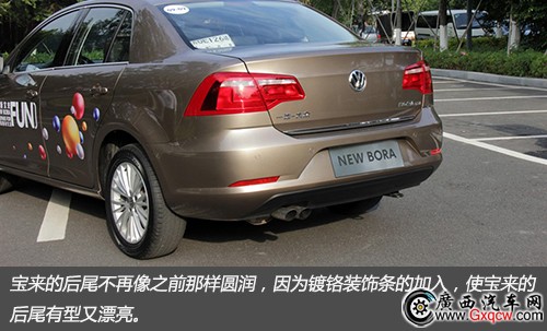 寶來的后尾不再像之前那樣圓潤,因為鍍鉻裝飾條的加入,使寶來的后尾有型又漂亮。