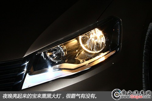 夜晚亮起來的寶來熏黑大燈,很霸氣有沒有。