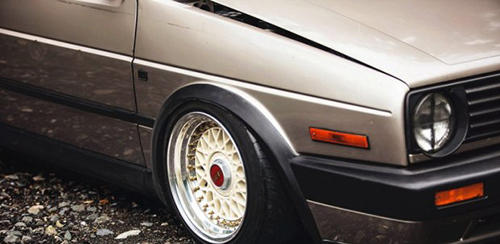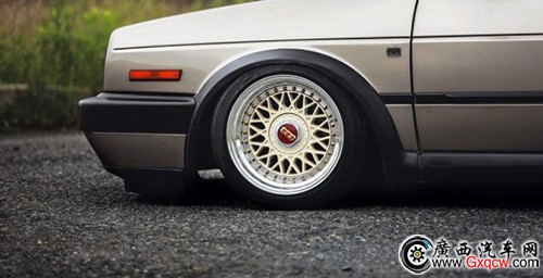 通過換裝Weitec絞牙減震器大幅降低車身高度。輪圈為經(jīng)典的BBS RM'S款,直徑為16寸,前后寬度分別為8.5寸和9寸。