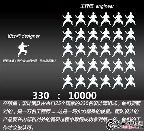 大眾的一位工程師曾說(shuō)過(guò):“我們每做出一個(gè)設(shè)計(jì),都要經(jīng)過(guò)產(chǎn)品調(diào)研的過(guò)程,只有我們的設(shè)計(jì)在調(diào)研過(guò)程中取得成功,拿到**名,我們的工作才會(huì)被認(rèn)可!痹诶潜,330人的設(shè)計(jì)團(tuán)隊(duì)所面對(duì)的是10000多名工程師,壓力可想而知。