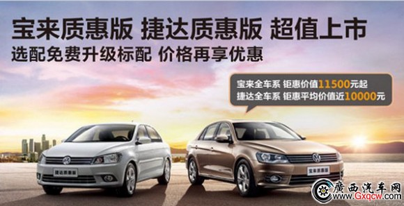 多年來,憑借超高品質(zhì)、強勁動力、完美操控和貼心關懷,捷達和寶來始終引領中國A級轎車市場的發(fā)展,成為中國高品質(zhì)A級轎車的標桿。 此次捷達和寶來這兩款重量級車型同時推出“質(zhì)惠版”,無疑將受到消費者的歡迎,也必將對同級車市帶來強烈的沖擊。