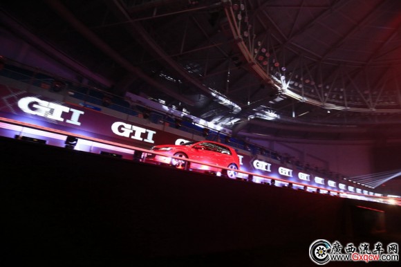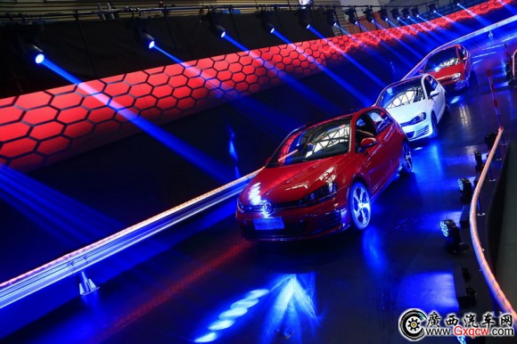 發(fā)布會(huì)現(xiàn)場,全新高爾夫GTI環(huán)繞賽道震撼登場