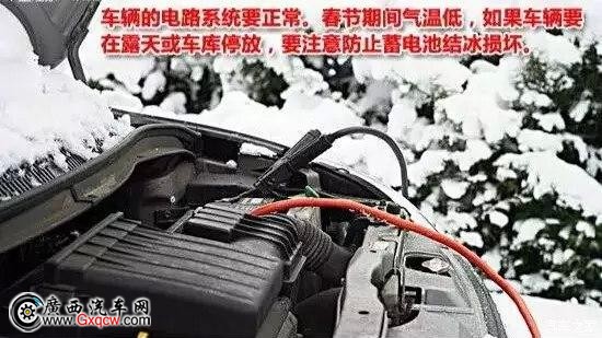 蓄電池最怕低溫,低溫環(huán)境下,蓄電池電容量比常溫時(shí)的電容量低得多。春節(jié)期間氣溫低,如果車輛要在露天或車庫(kù)停放,要注意防止蓄電池結(jié)冰損壞。如果電瓶充電不足,極易在嚴(yán)寒中裂損。