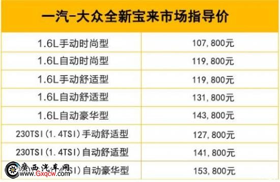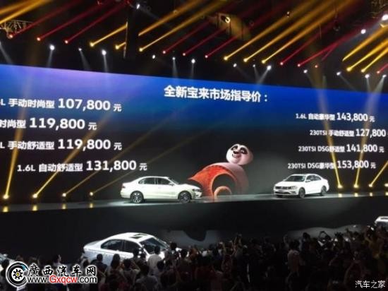2016年3月20日,?冢黄-大眾全新寶來上市發(fā)布會在馮小剛電影公社隆重舉行,備受期待的全新寶來終于來了!上市發(fā)布會以“樂生活 趣改變”為主題,共推出1.6L和1.4TSI兩個排量共8款車型的市場指導(dǎo)價,價格區(qū)間10.78-15.38萬元。