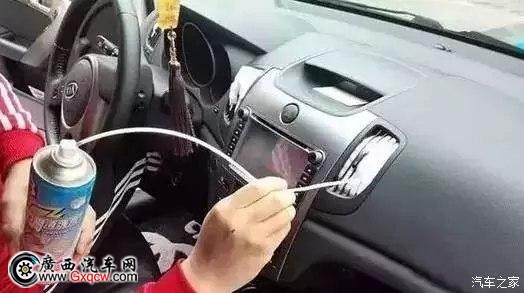 ① 將清洗劑噴入中控臺(tái)上的每個(gè)出風(fēng)口,幾分鐘后,開啟空調(diào)吹出;