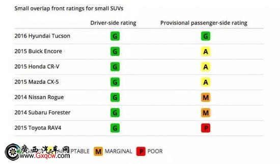 汽車行業(yè)關(guān)注6月24日訊- 今天,IIHS( 美國公路安全保險(xiǎn)協(xié)會(huì))發(fā)布了一份*新報(bào)告,報(bào)告揭露了一批車型在25%小重疊碰撞測試中加固了接受碰撞測試的左前方,這些車型在碰撞測試中都獲得了優(yōu)秀的成績;當(dāng)碰撞位置改成右前方時(shí),除了現(xiàn)代途 勝同樣獲得了優(yōu)秀的成績,其余車型的成績均變得更差,尤其是豐 田RAV4,從優(yōu)秀變成了不合格。