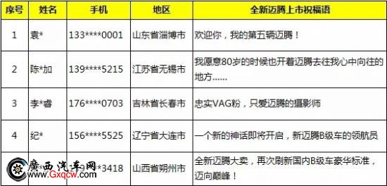 全國(guó)近百位邁騰粉絲踴躍給B哥上市送來(lái)各種祝福