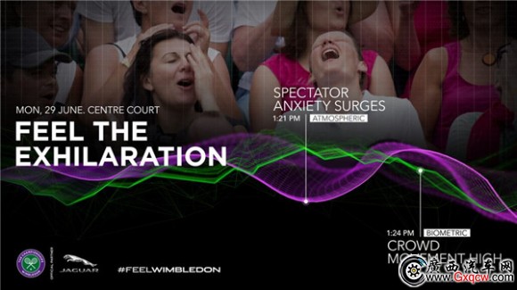 在整個(gè)溫網(wǎng)錦標(biāo)賽中,捷豹都會(huì)分析記錄觀眾觀賞精彩賽事時(shí)的情緒反應(yīng),包括對(duì)人山人海的中心大球場、1號(hào)球場以及亨曼山的氣氛進(jìn)行測量比較,在本土奪冠熱門選手激烈搏殺時(shí)對(duì)群情鼎沸的賽場進(jìn)行情緒測定,并在溫網(wǎng)進(jìn)入關(guān)鍵的五場比賽時(shí)捕捉球場內(nèi)的緊張氣氛。