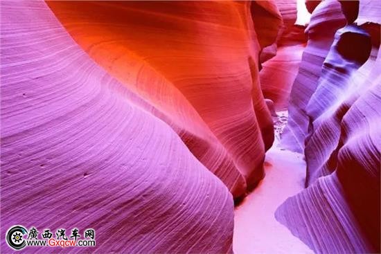 羚羊谷是世界上著名的狹縫型峽谷。峽谷通道的光線千變?nèi)f化,只有正午很短的時(shí)間陽光才能透過幾處間隙照到谷底,色彩令人驚艷。