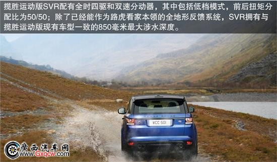 具 備相當(dāng)程度 的越野能力才有資格背負(fù)“攬勝”之名,攬勝運(yùn)動(dòng)版SVR配有全時(shí)四驅(qū)和雙速分動(dòng)器,其中包括低檔模式,前后扭矩分配比為50/50。除了已經(jīng)能作為路虎看 家本領(lǐng)的全地形反饋系統(tǒng),SVR擁有與攬勝運(yùn)動(dòng)版現(xiàn)有車型一致的850毫米*大涉水深度,其拖曳重量可達(dá)3000公斤。