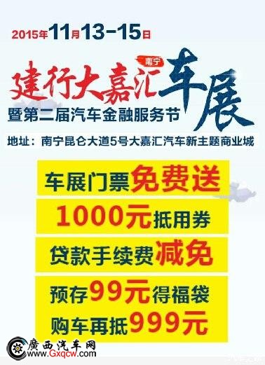 11月13-15日大嘉匯汽車展暨第二屆建行分期購車服務(wù)節(jié)