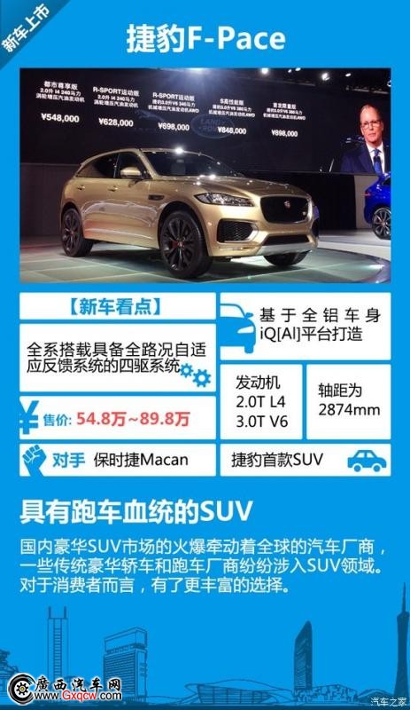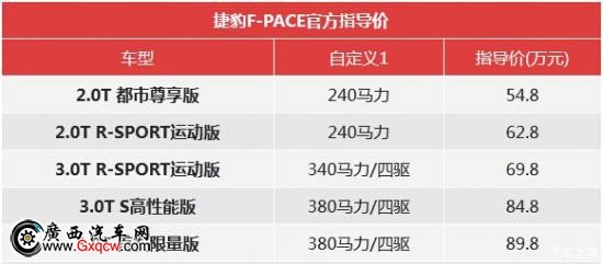 在本屆廣州車展上,捷豹F-Pace正式在中國(guó)**亮相,新車售54.8萬(wàn)-89.8萬(wàn)元,搭載2.0T和3.0T動(dòng)力,其中3.0T車型分為高低不同兩種功率調(diào)校,并匹配四驅(qū)系統(tǒng)。作為捷豹路虎集團(tuán)的首款SUV車型,F(xiàn)-PACE會(huì)借助路虎在SUV領(lǐng)域的豐富經(jīng)驗(yàn),全系將搭載具備全路況自適應(yīng)反饋系統(tǒng)的四驅(qū)系統(tǒng),保證在各種路況下的通過性和穩(wěn)定性。