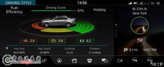 搭 載有史以來**、最直觀的互聯(lián)車載系統(tǒng)——InControl智能馭領系統(tǒng),其12.3英寸TFT虛擬液晶儀表盤則將車輛的互聯(lián)駕駛帶入全新境界。以觸 摸屏進行交流,提供音樂播放、雙屏顯示、導航等服務,甚至可以撥打電話、瀏覽新聞;也可以允許遠程應用程序接入,隨時掌控一切信息。