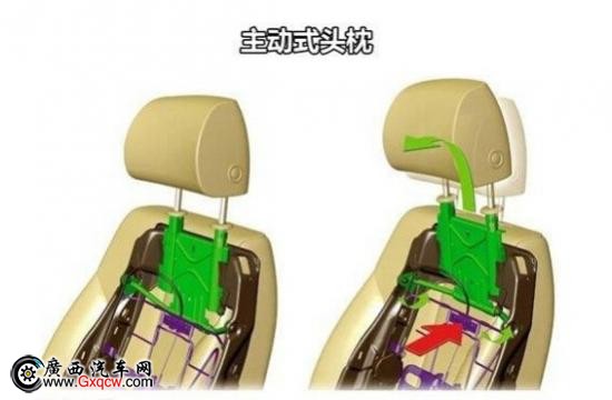 碰撞主動(dòng)保護(hù)機(jī)制安置在坐椅里面, 當(dāng)受到激活, 座椅中的機(jī)械裝置會(huì)使頭枕向上移,從而保護(hù)人的頭頸。